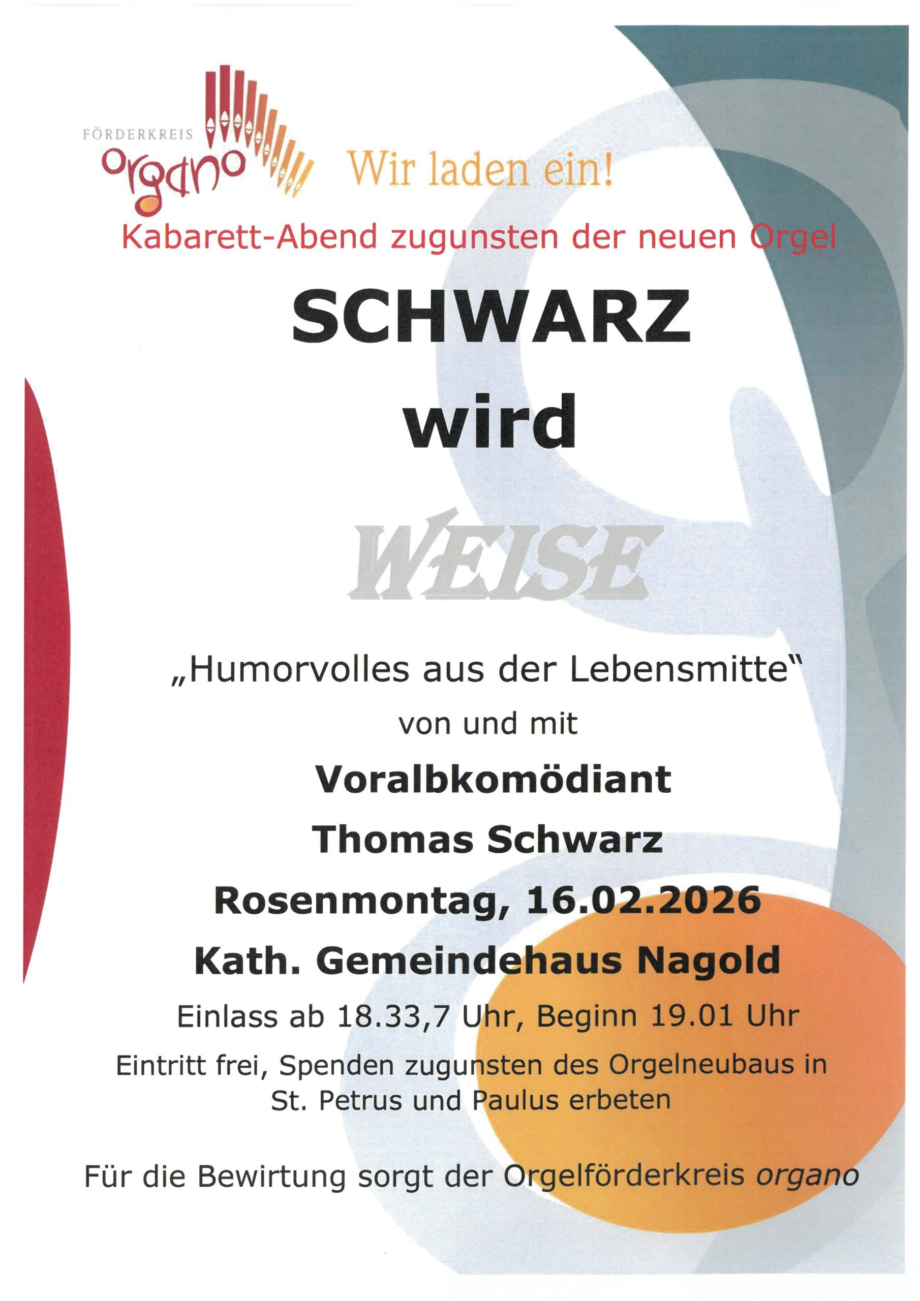 Der Orgelförderkreis organo lädt ein zum Kabarett zugunsten der Orgel