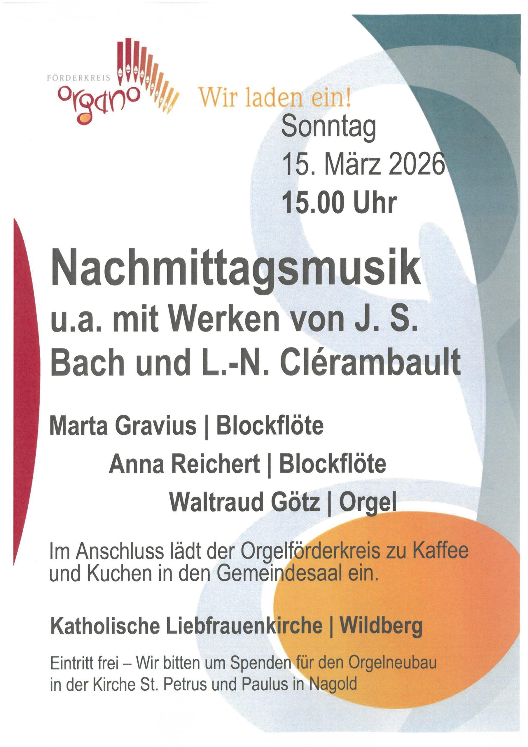 Nachmittagsmusik am 15.3.2026 um 15.00 Uhr in der kath. Liebfrauenkirche in Wildberg