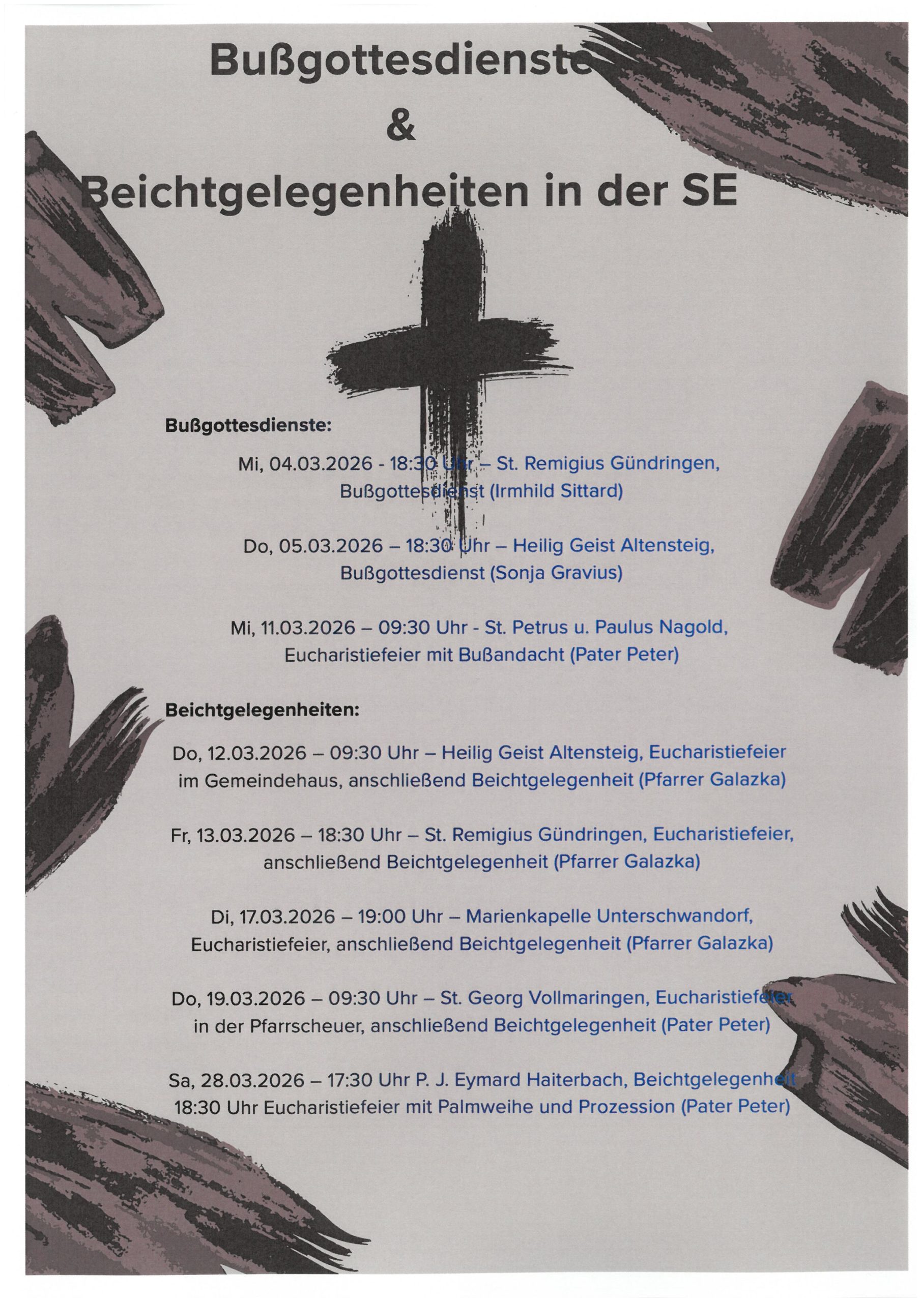 Bußgottesdienste & Beichtgelegenheiten in der SE