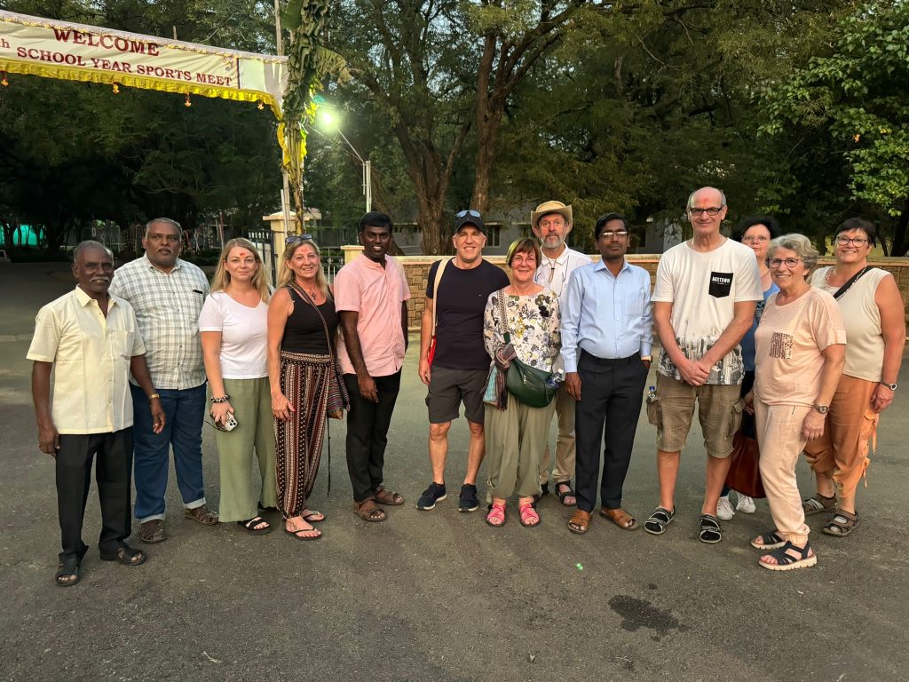 Am 16.1. 2024 begab sich eine 25 köpfige Gruppe aus der katholischen Seelsorgeeinheit Oberes Nagoldtal und aus Jena auf den Weg nach Indien. Pater Peter Leonard, der aus dem im Süden Indiens liegenden Bundesstaat Tamil Nadu stammt, hatte die Reise organisiert. Nach dem Flug von Frankfurt über Dubai verbrachte die Gruppe die ersten Tage bei unerwartet kalten Temperaturen in Delhi und Agra. Dort standen das Grabmal Mahatma Gandhis, das Taj Mahal, die ehemalige Residenz Agra Fort und der Sikh Tempel Fatehpur Sikri, in dem täglich tausende Besucher aus der Großküche des Tempels mit Essen versorgt werden, auf dem Programm. Eine spannende Riksha Fahrt vermittelte erste Eindrücke über die z.T. äußerst ärmlichen Lebensbedingungen vieler in den Städten lebender Inder/-innen. Der Weiterflug nach Goa an der Westküste brachte hochsommerliche Temperaturen. Die Häuser in dieser Region zeugen noch von der portugiesischen Kolonialzeit. Der kilometerlange Strand nahe der Hotelanlage bot Gelegenheit zur Erholung. In Alleppey im südlichen Bundesstaat Kerala wartete nach einem anstregenden Tag mit 2 Inlandflügen und mehreren Besichtigungen eine ganztägige Hausbootfahrt in den Backwaters, der Mündung des dortigen Flusses in das Arabische Meer, auf die Reiseteilnehmer. Hier bot sich ein herrlicher Blick auf die endlosen Reisfelder. Am nächsten Tag folgte ein Besuch des Kinderheimes “Sunrise” in Tirunalveli. An der dazugehörigen “Matric School” werden 500 Schüler/-innen aus der Region von 40 Lehrer/-innen unterrichtet. Die Gruppe pflanzte 3 Mangobäume und Pfarrer Riechel aus Jena und auch die Reisegruppe überreichten Spenden. In Pater Peters Heimatort Rajapalayam in Tamil Nadu hieß seine Familie die Gruppe herzlich willkommen. Nach der traditionellen Begrüßung jedes einzelnen Gastes servierte die Familie auf der Hochterrasse ein tamilisches Essen auf Bananenblättern, das mit den Händen gegessen wurde. Die Gruppe überreichte eine Spende der Seelsorgeeinheit Oberes Nagoldtal für das Dorf, das im Dezember von einer Überschwemmung heimgesucht wurde. Auch die Dorfbewohner hatten ein farbenfrohes musikalisches Programm vorbereitet. Am folgenden Tag führte Pater Peter durch das Priesterseminar der Schönstatt Patres in Madurai, wo er zum Priester ausgebildet wurde. 82 % der indischen Bevölkerung sind Hindus und so wurden natürlich auch einige imposante Hindu Pilgerstätten besichtigt, u.a. der Akshardham und der Meenakshi Tempel, sowie die in den Fels gehauenen Reliefs in Mahabalipuram, nahe Chennai, der letzten Station der Reise. In dieser Stadt befindet sich auch das angebliche Grabmal des Apostels Thomas. Am Nachmittag des 30.1. übergaben 10 Reiseteilnehmer in Pater Peters Dorf Lebensmittel an ca. 90 Dorfbewohner, die von Pater Peters Bruder von den Spendengeldern der Seelsorgeeinheit in Höhe von 3200 € gekauft worden waren. Auch der Verlust einer Kuh wurde ersetzt und ein blindes Paar bekam ein kleines Goldgeschenk ( ind. Gottheit) zur Hochzeit. Zwei Patres und Pater Peters Bruder erhielten Geld für die Reparatur von Flutschäden. Anschließend trat die Gruppe von Chennai aus den Rückflug nach Deutschland an.